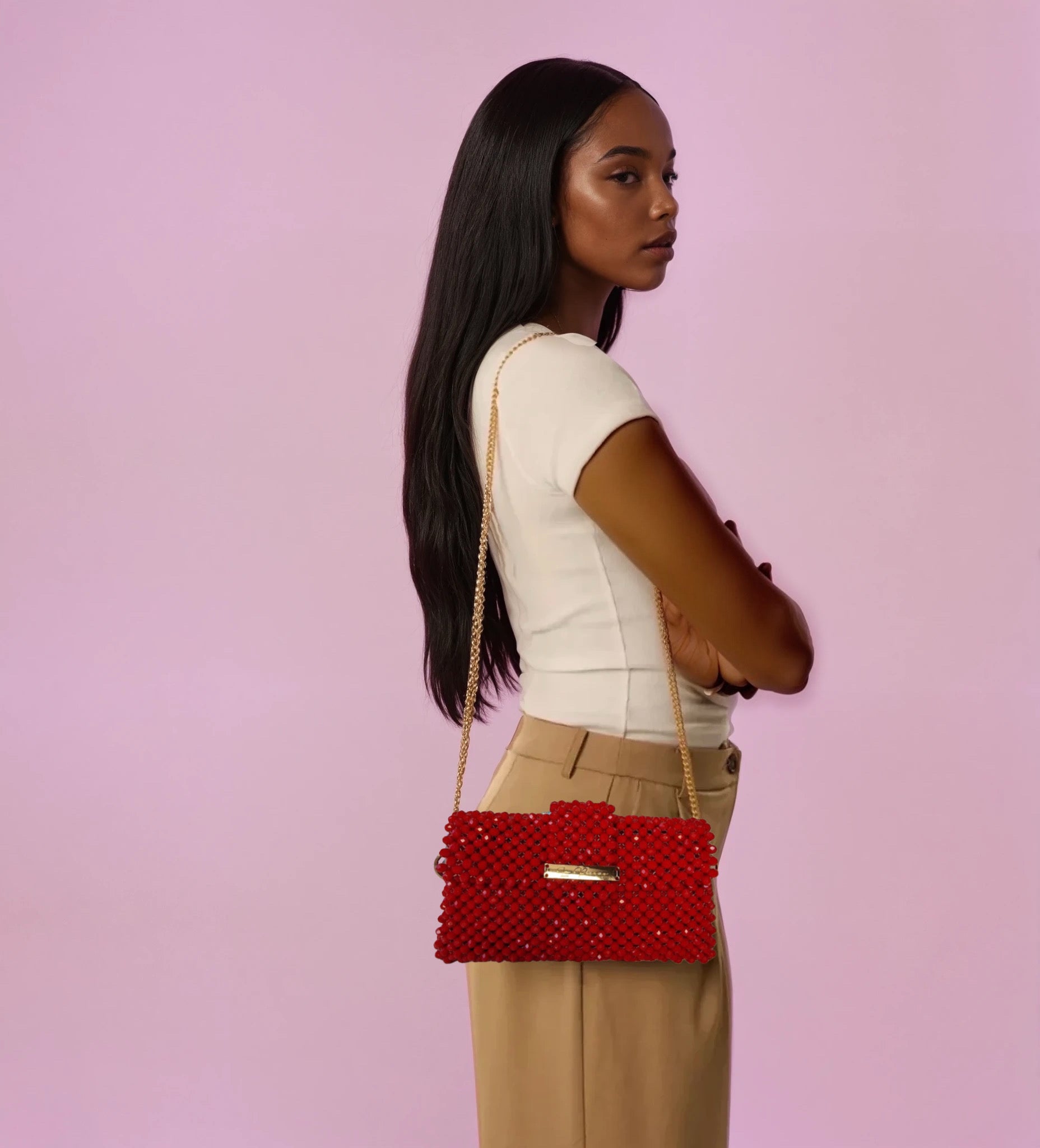 Stylish, elegant and high quality, that's how you can describe the Cali. The collection is made of top quality Czech glass beads. The applications are gold, which gives the bags a luxurious look.