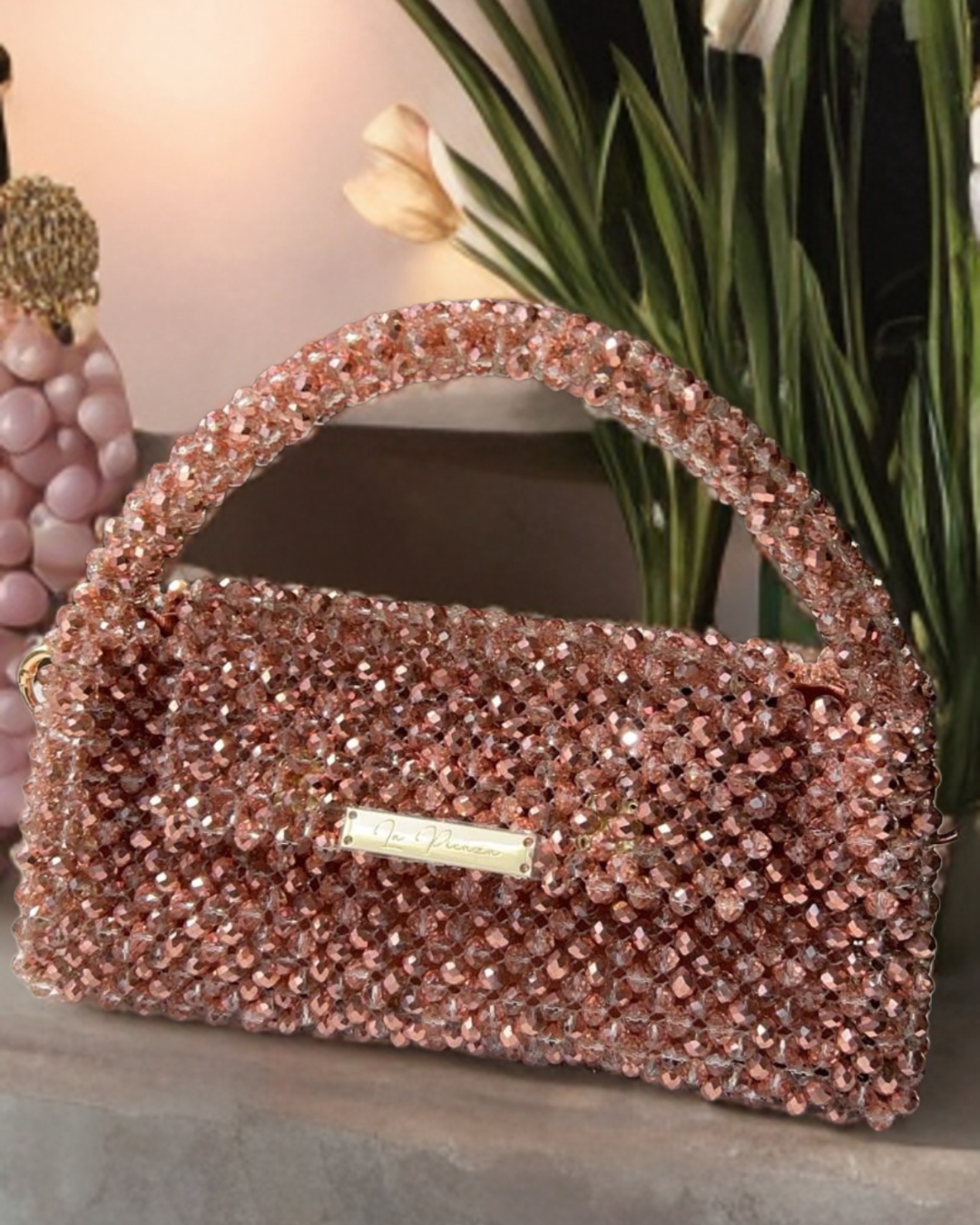 Stylish, elegant and high quality, that's how you can describe the Cartagena. The collection is made of top quality Czech glass beads. The applications are gold, which gives the bags a luxurious look.