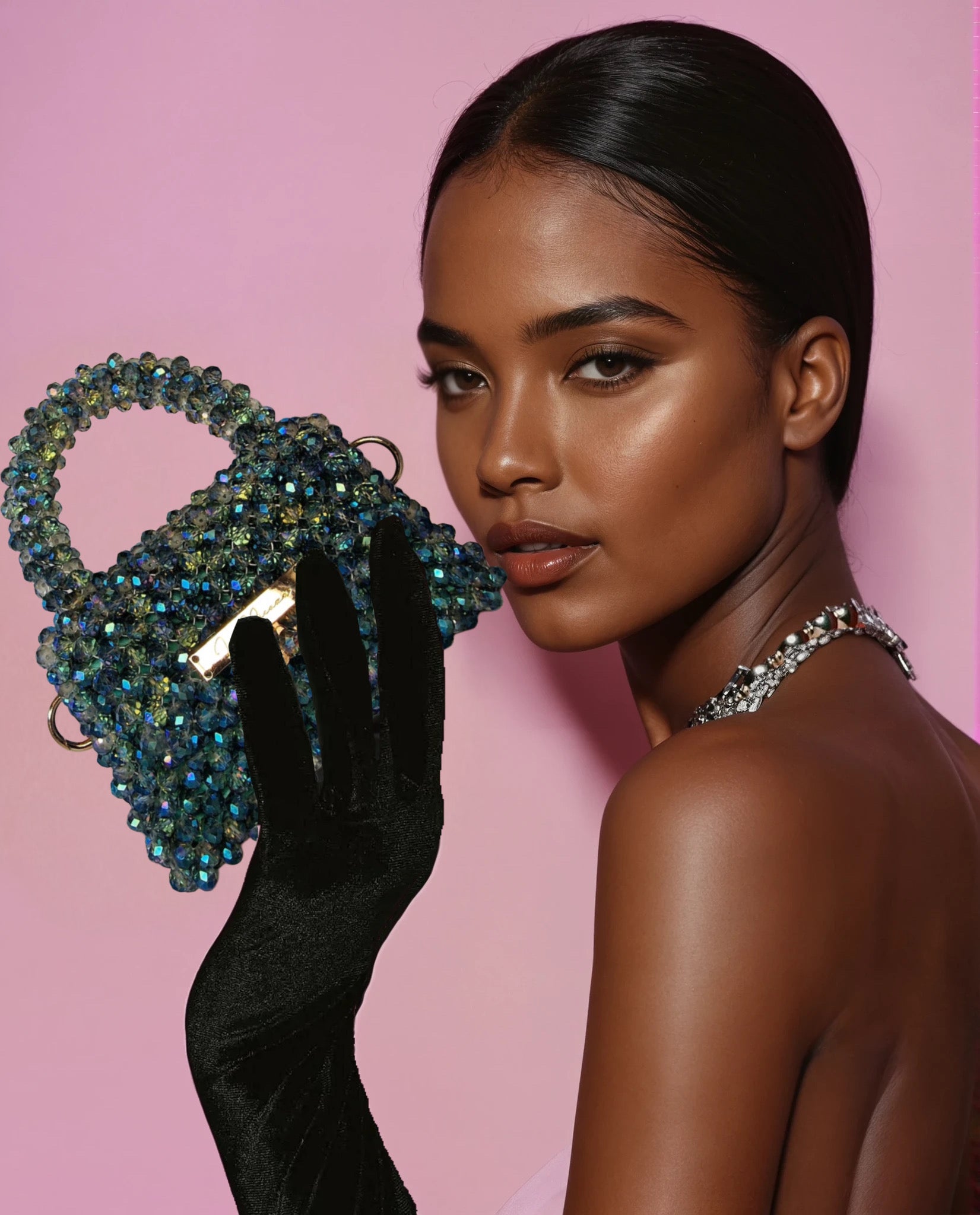 Stylish, elegant and high quality, that’s how you can describe the Florencia. The collection is made of top quality Czech glass beads. The applications are gold, which gives the bags a luxurious look.