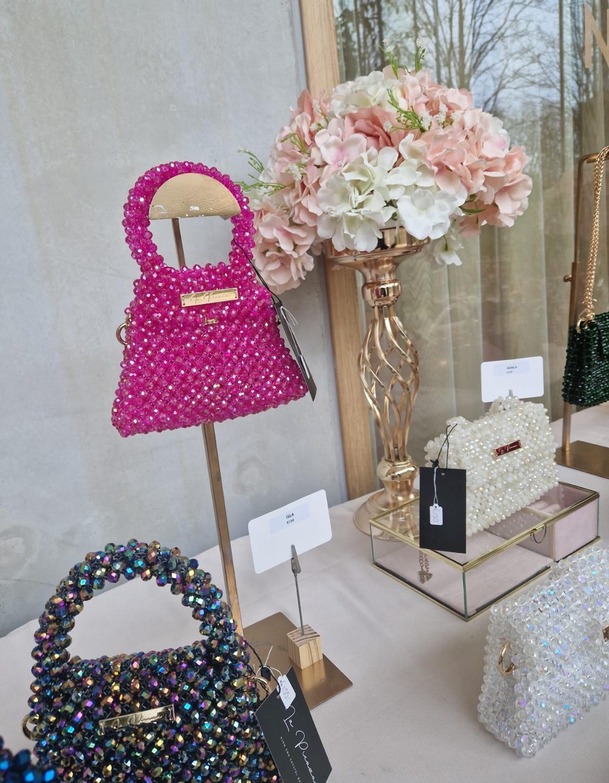 Stylish, elegant and high quality, that's how you can describe the Isla. The collection is made of top quality Czech glass beads. The applications are gold, which gives the bags a luxurious look.