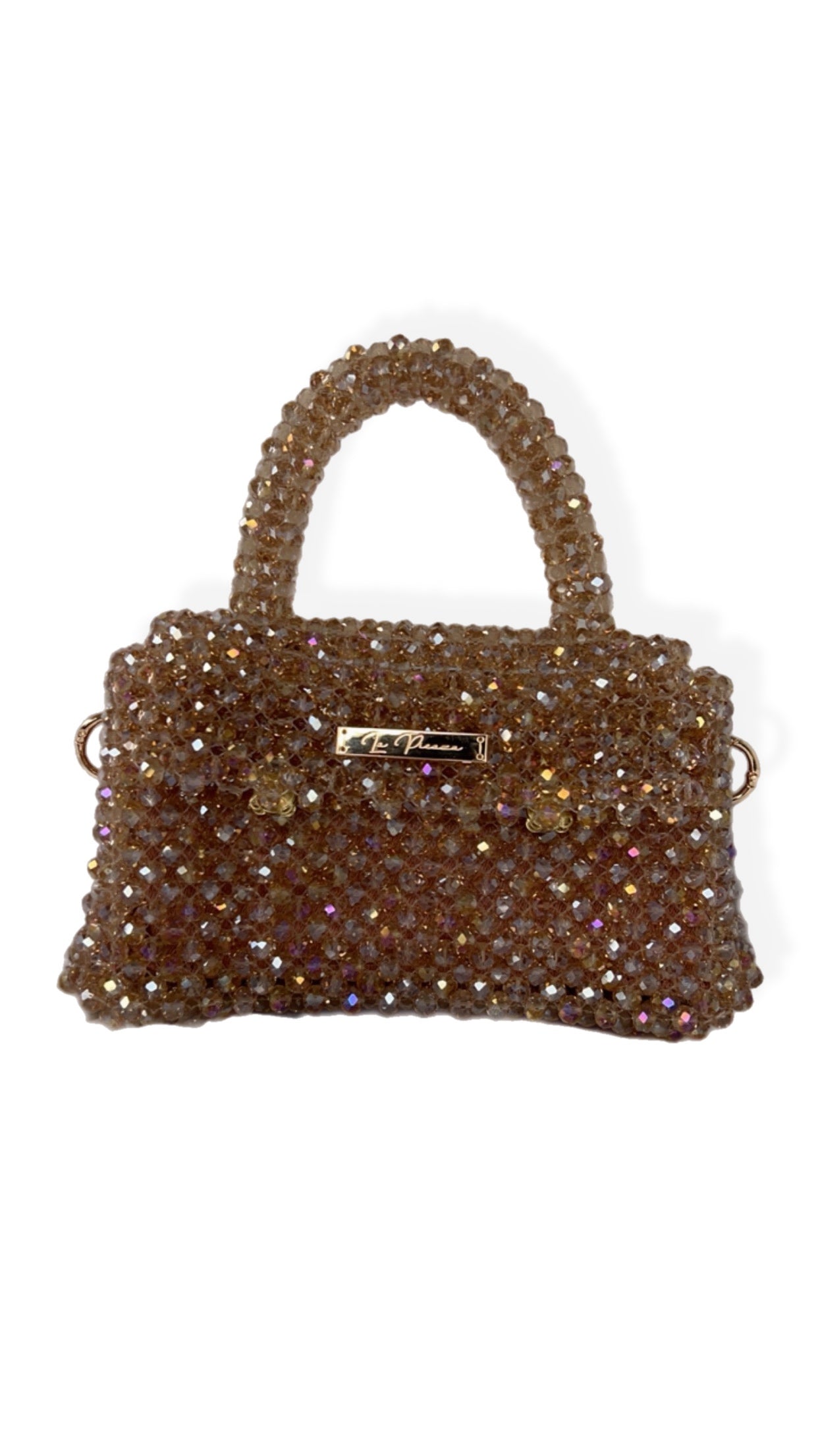 Stylish, elegant and high quality, that's how you can describe the Magdalena. The collection is made of top quality Czech glass beads. The applications are gold, which gives the bags a luxurious look.