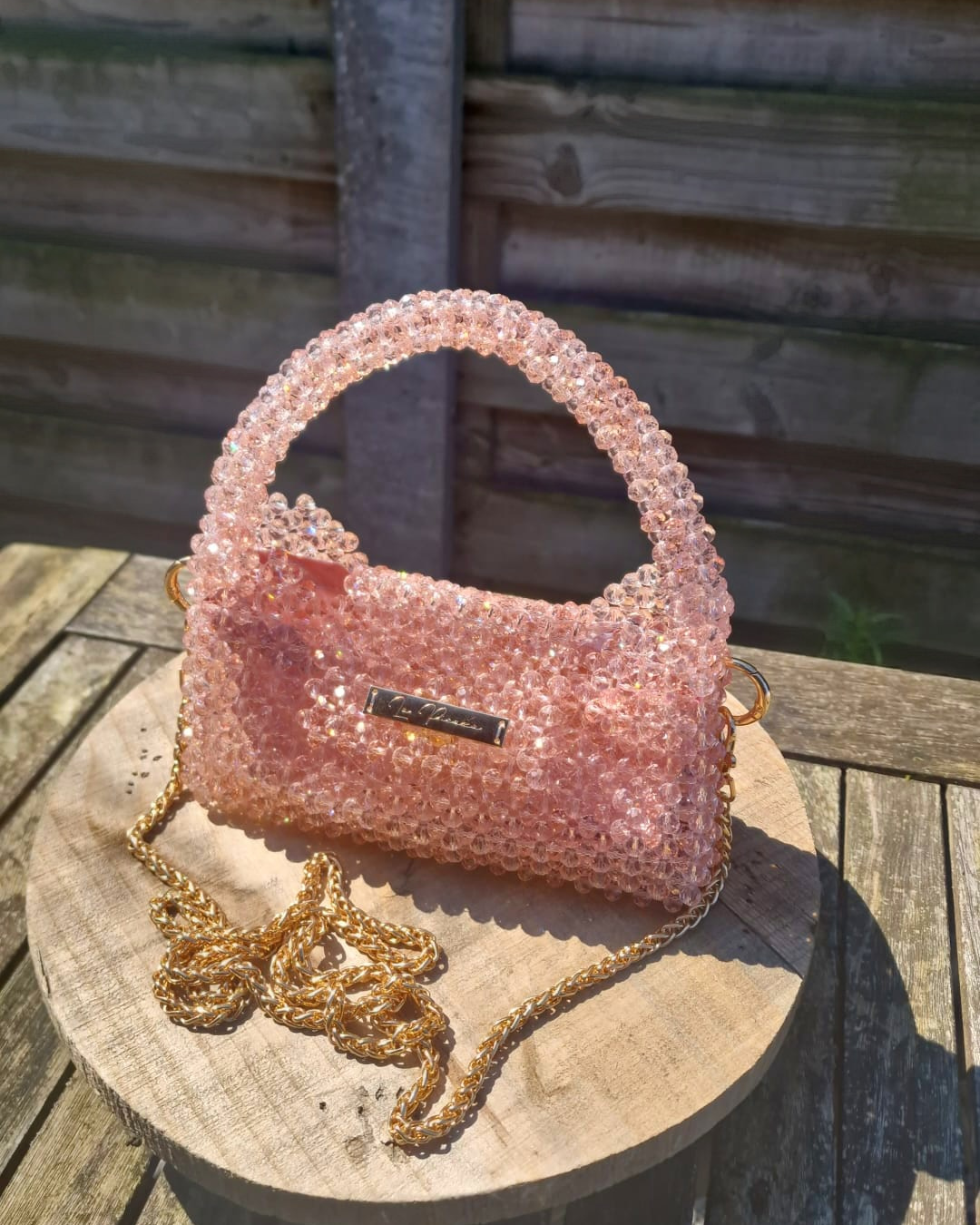 Stylish, elegant and high quality, that's how you can describe the Rosario. The collection is made of top quality Czech glass beads. The applications are gold, which gives the bags a luxurious look.